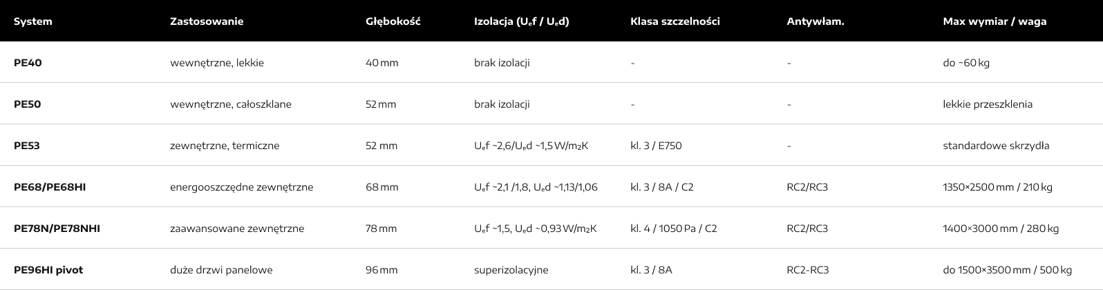 Głębokie, termicznie izolowane drzwi o głębokości 78 mm, PE78NHI – z dodatkową uszczelką centralną.