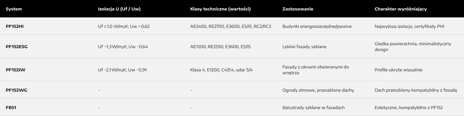 System słupowo‑ryglowy przeznaczony do ścian osłonowych, zadaszeń i świetlików, z certyfikatem Passivhaus Institut dla wersji PF152HI PASSIVE.